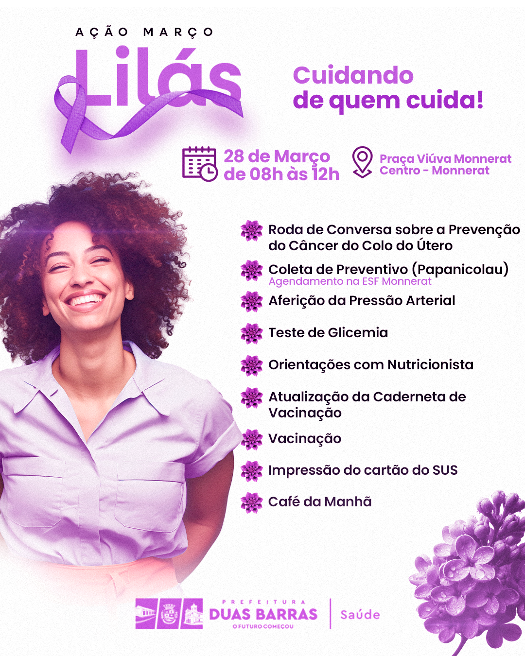 O mês de março é dedicado à valorização da mulher e ao fortalecimento das ações de prevenção à saúde. Com esse propósito, será realizada uma ação especial voltada ao cuidado integral da saúde feminina.